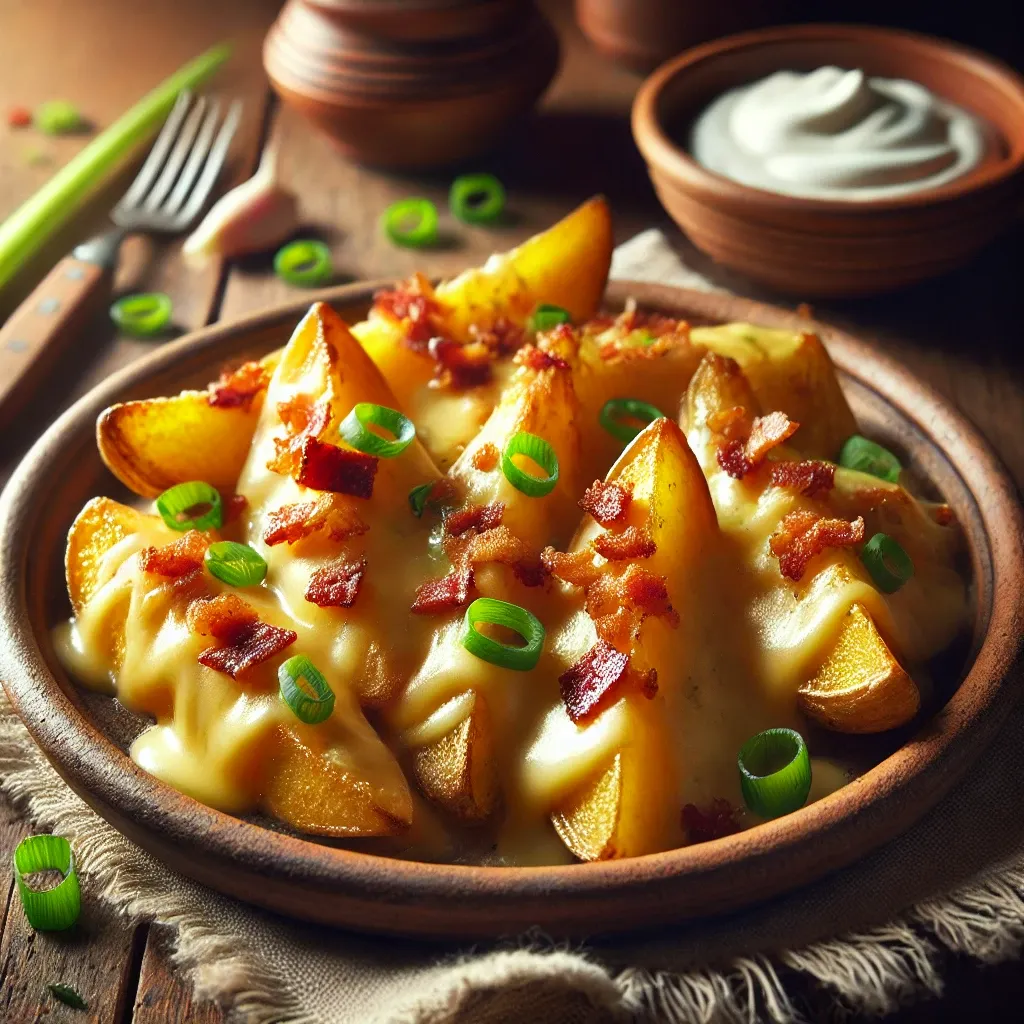 | 치즈와 베이컨 감자구이 | 감자, 베이컨, 치즈 | 쉬움 | 간식 |